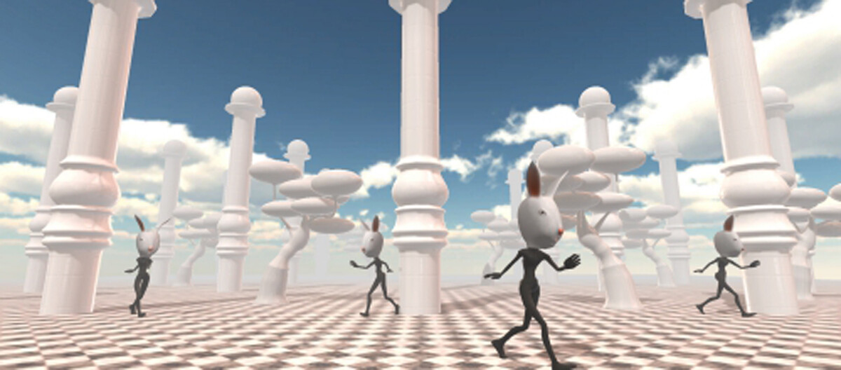 는 인간의 바라봄(Seeing)과 보임(Seen)이라는 이중적 시선을 표현한 게임아트다. 토끼들은 자신과 다른 낯선 관객의 등장에 자신의 행동을 멈추고 관객을 응시한다. 관객과 토끼의 불편한 상호응시는 관객이 그 자리를 피할 때가지 지속된다. 여기서 토끼가 보는 주체일 때 관객은 보이는 타자가 되며, 반대로 관객이 주체자로서 토끼를 바라볼 때, 토끼는 보임을 당하는 대상이 된다. 인간이 끊임없는 지각을 하는 이유는 바로 스스로 주체로 남기 위한 몸부림일 것이다. 응시란 바로 타인을 대상화시키고자 하는 권력놀이인 셈이다. (성정환)
